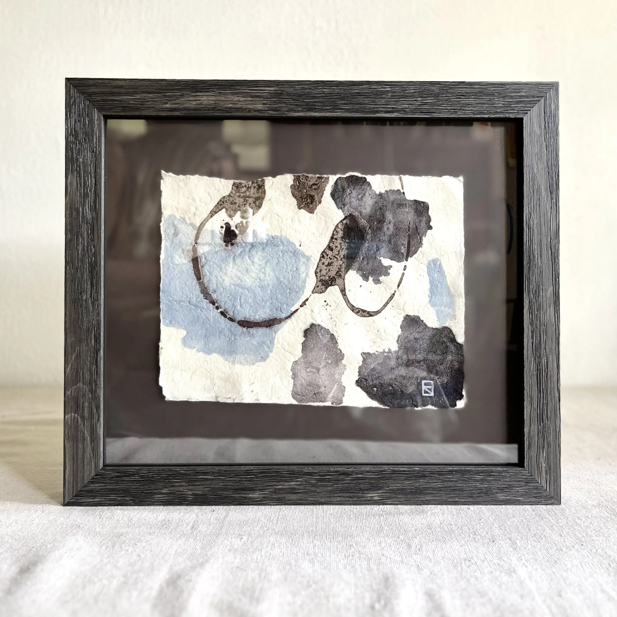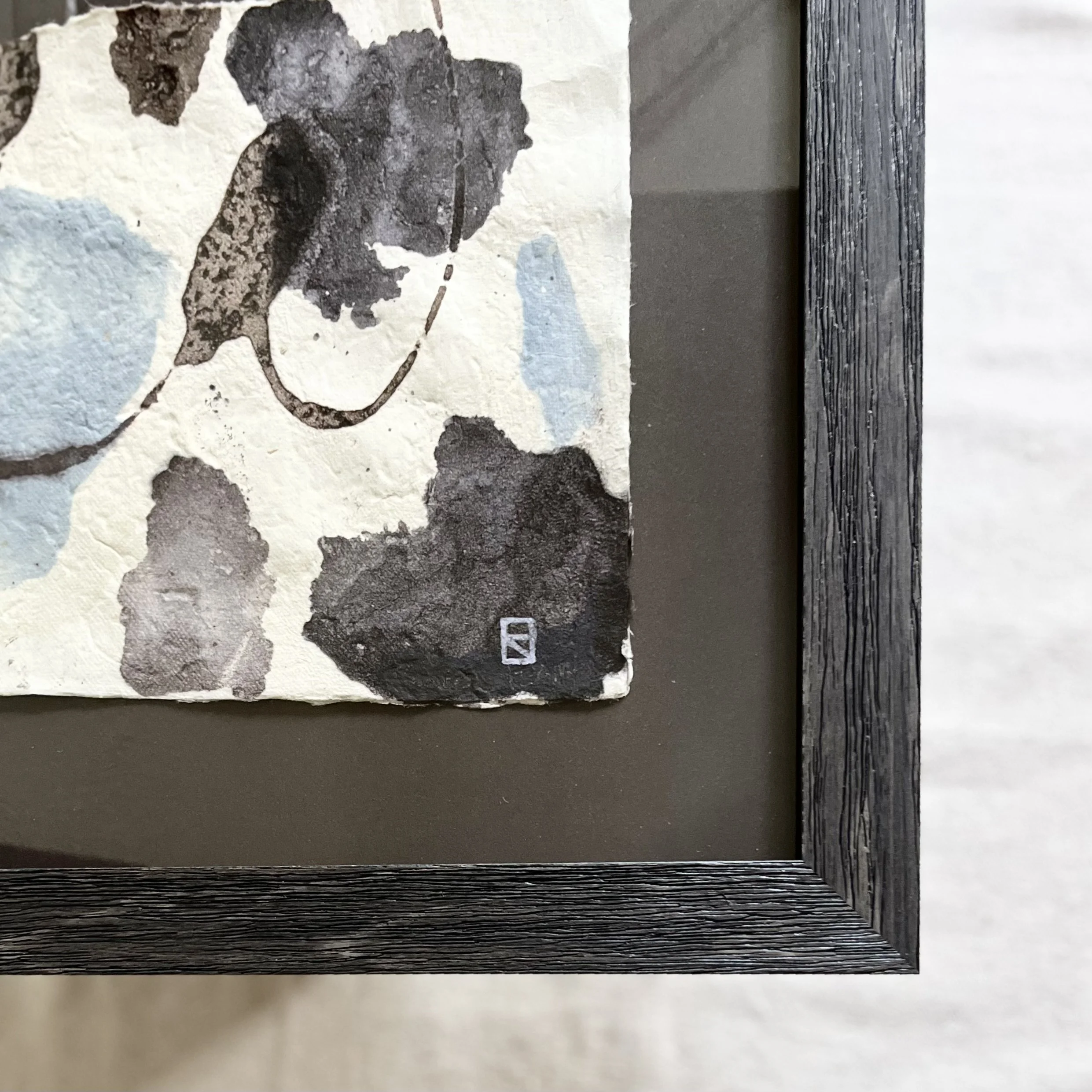 The pair, Amorphous I & II, won an Editor’s Pick award in a Pairs & Sets challenge on Minted.com in 2024. They have been custom-framed by Gravitas Gallery in Richmond, VA, in real wood frames and are floated on a textured acid-free mat board in a charcoal gray to accentuate the hand-torn edges of the paper.