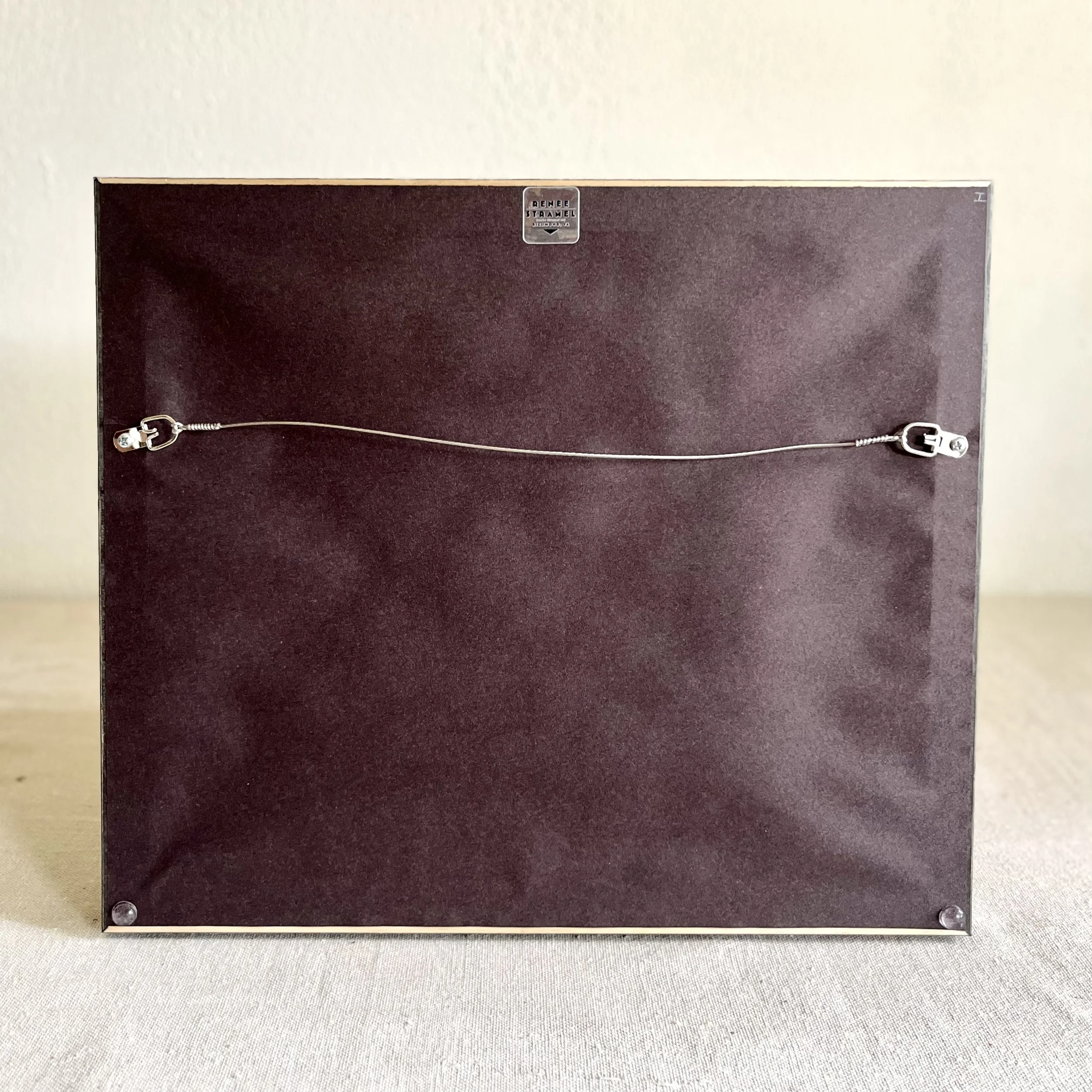 Custom framed in a wood frame in the color Ebony.