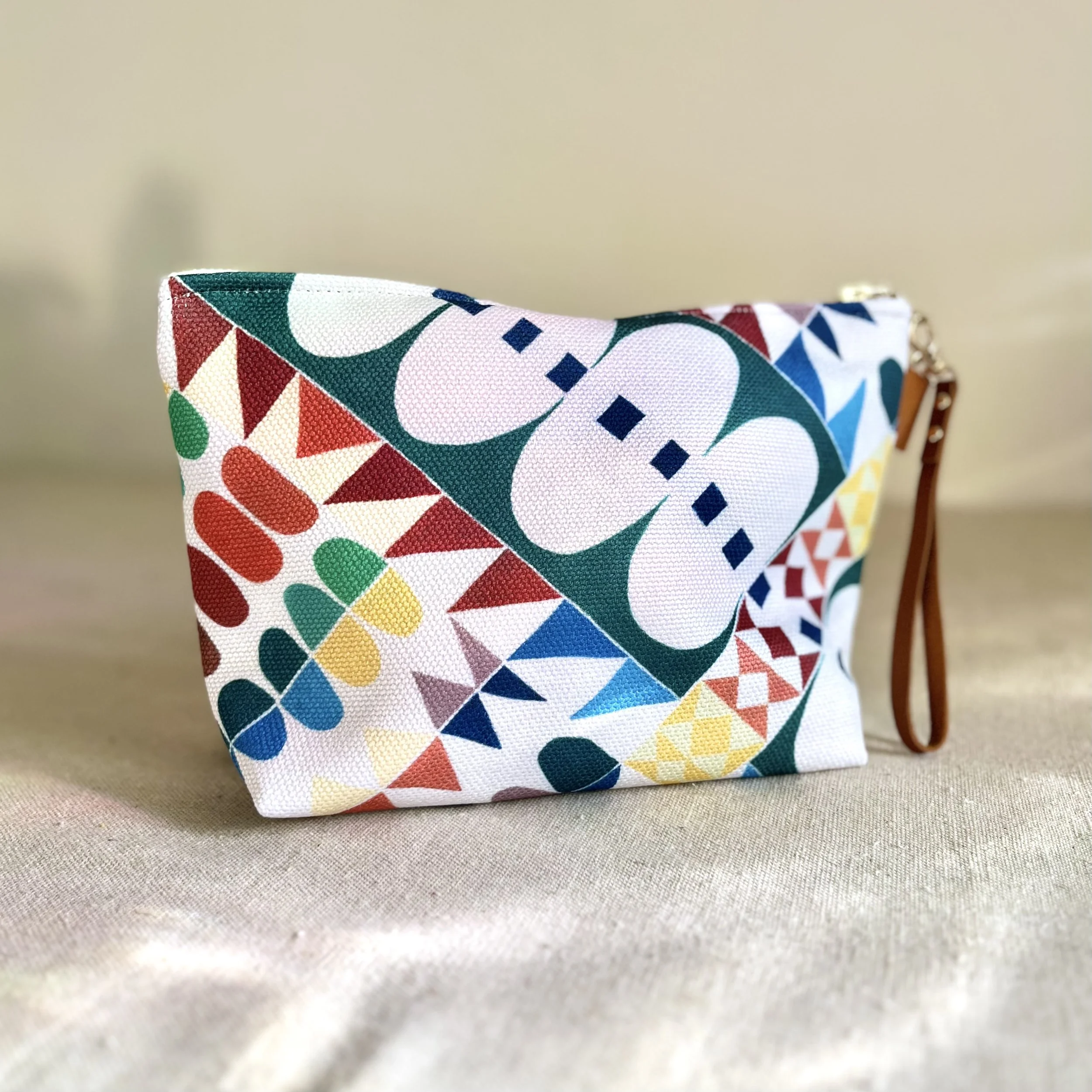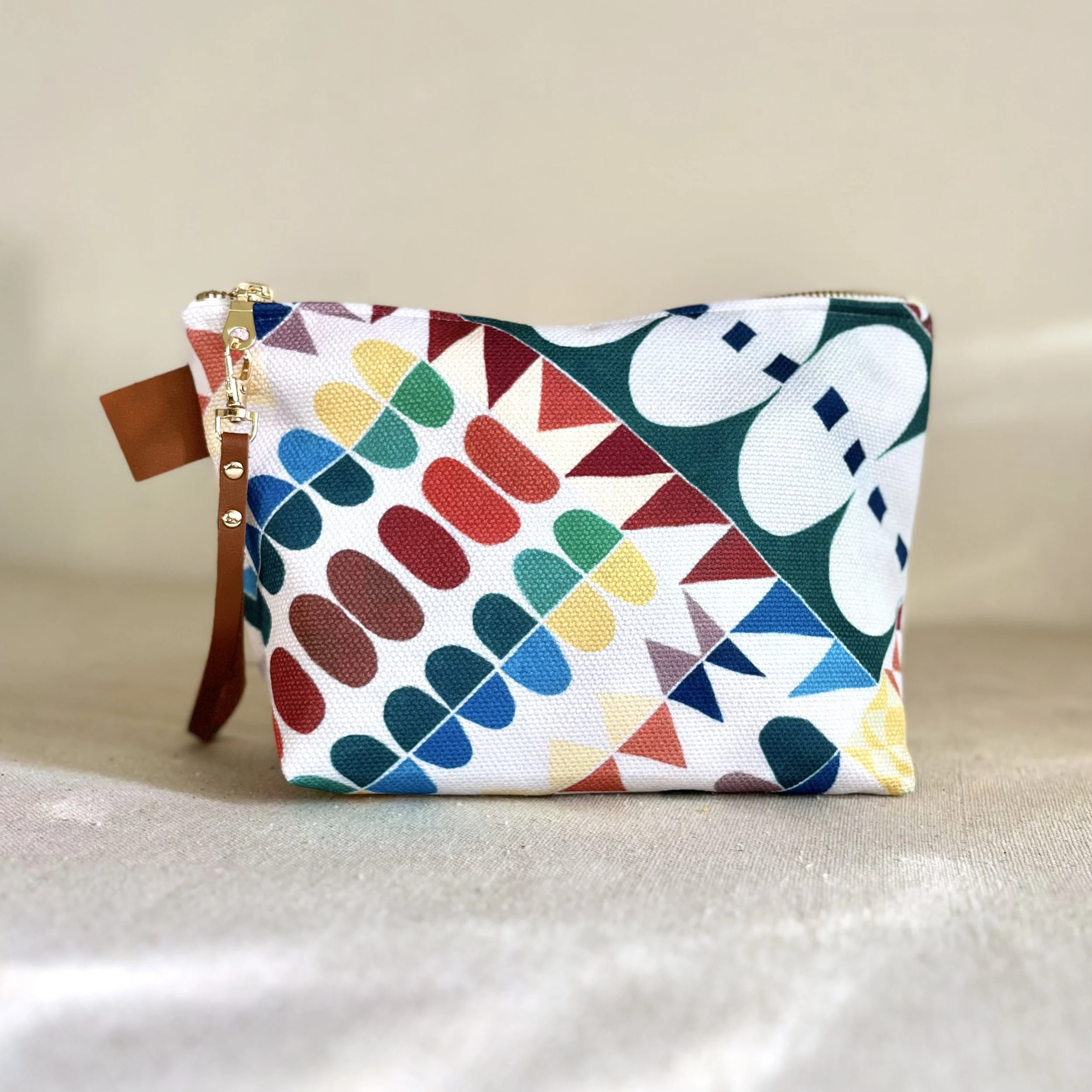 Denim lined zippered makeup bags featuring printed artwork. Made from durable canvas with ykk zipper and inner pocket, there’s many ways you can use your printed makeup bag.